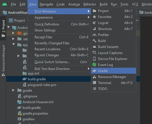 Anchor link to- En Android Studio, vaya a View > Tool Windows > Gradle.