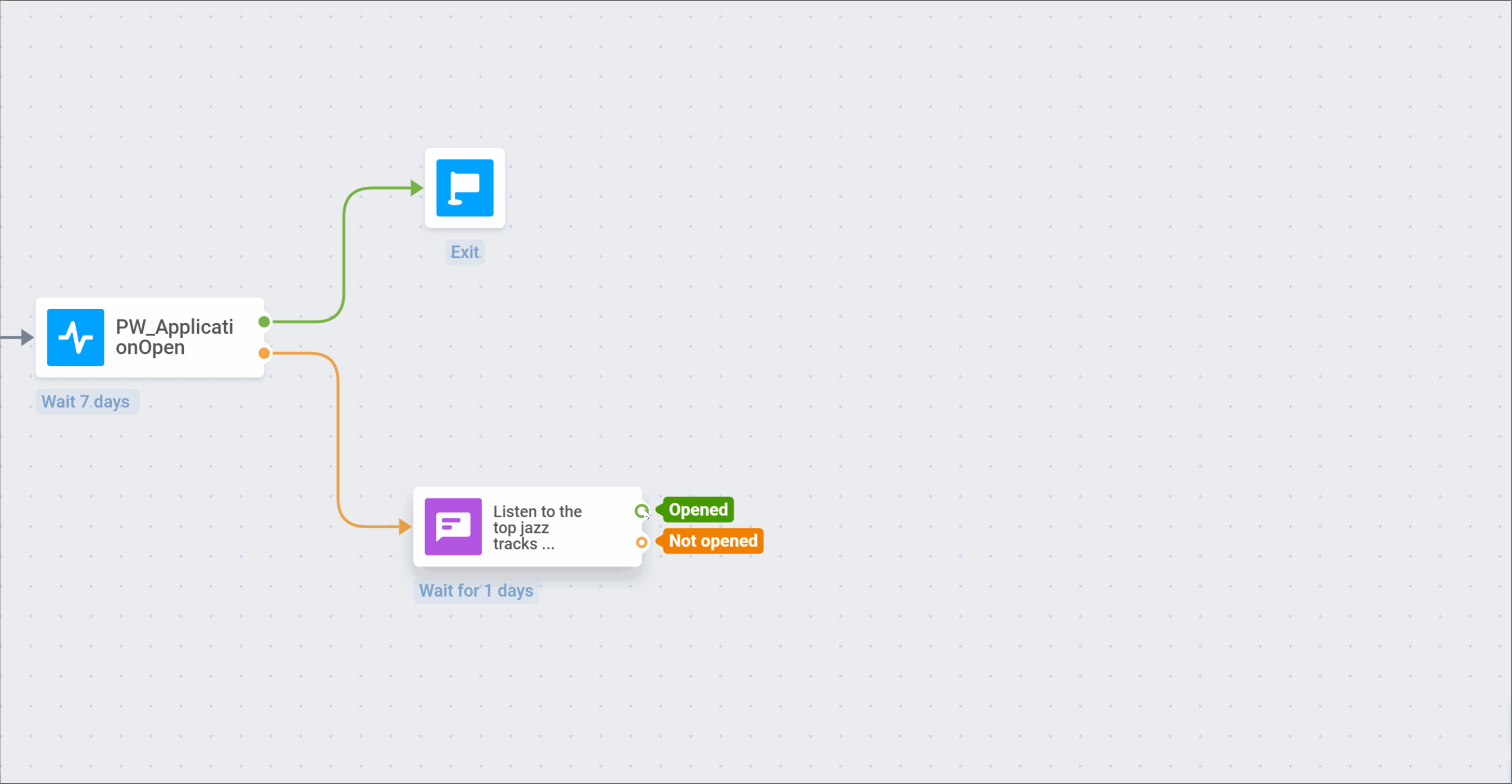 Journey branch showing app open trigger with exit path for users who opened app within seven days