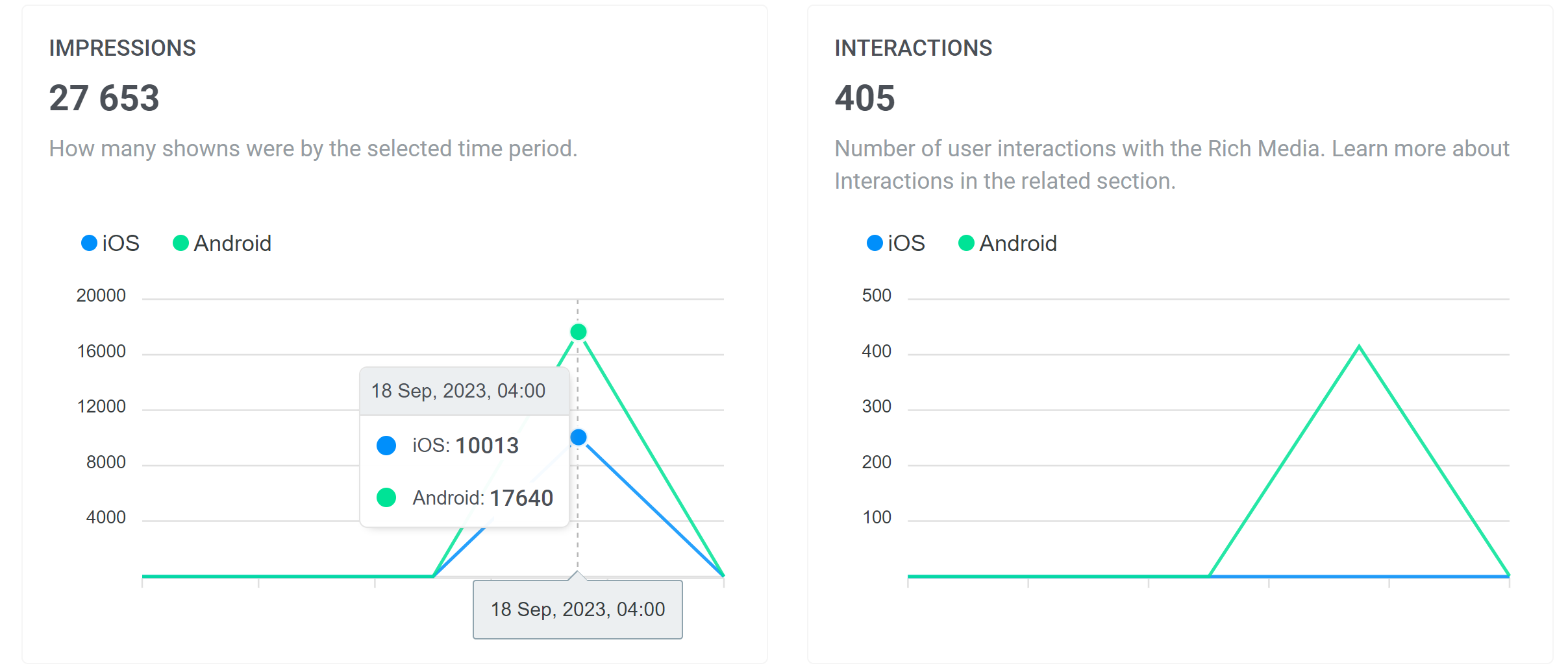 - Impressions: how many times the Rich media page was shown to users during the selected period.