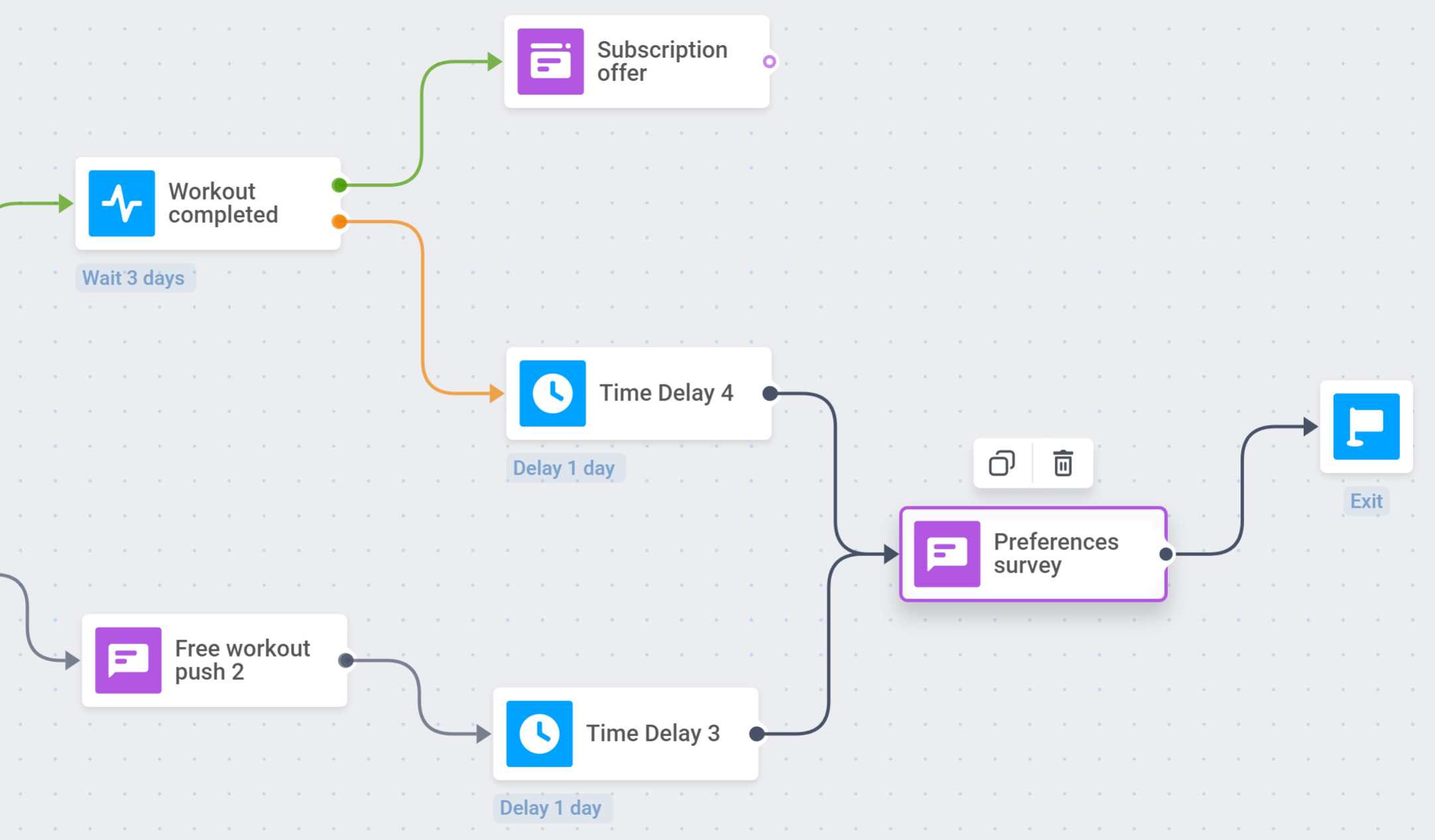 For this guide’s example, we’d say the first activation event is ‘Workout completed’, and it’s fair to wait a couple of days for the user to get involved.