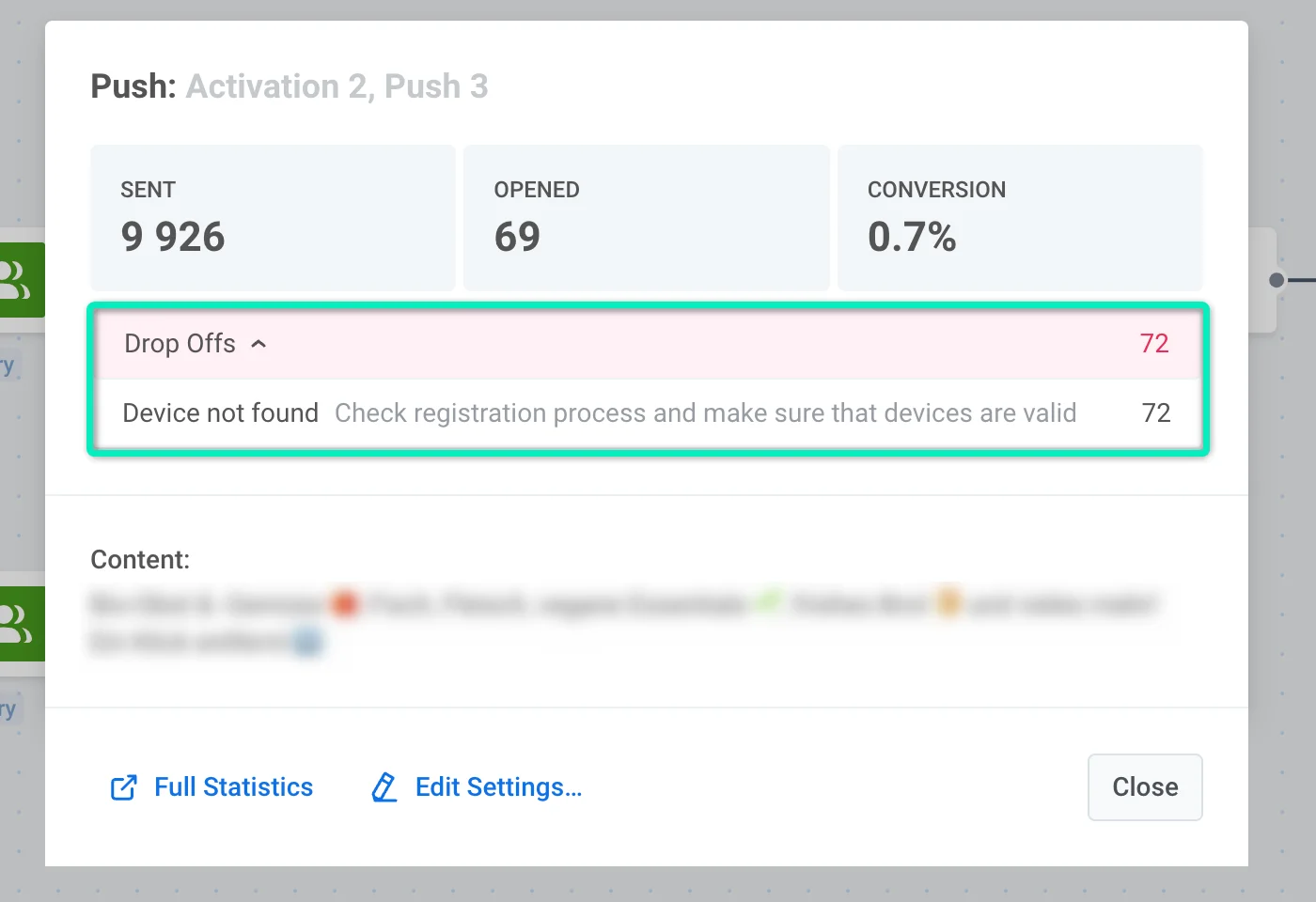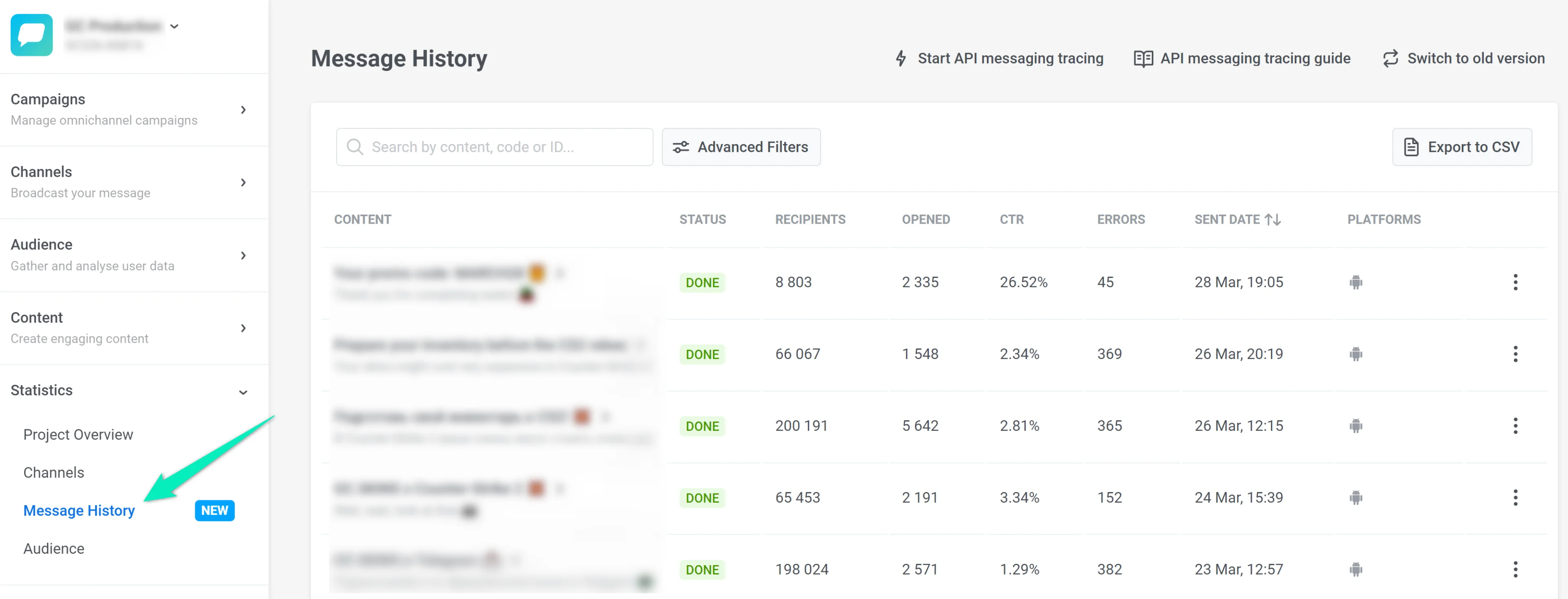 📈 Cálculo de CTR de push mais preciso: Refinamos como o CTR de Push é calculado para fornecer dados de desempenho de campanha mais equilibrados e perspicazes. O CTR agora é medido por mensagem e depois calculado a média. Além disso, incorporamos o engajamento no nível do dispositivo para lhe dar uma imagem mais precisa da interação do usuário com suas notificações push, particularmente quando várias mensagens são enviadas em um único dia.