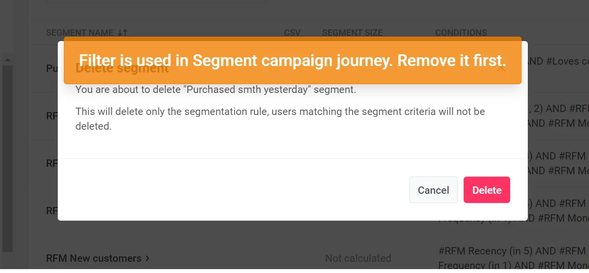 Anchor link to🧩 Crie segmentos mais inteligentes com suporte a segmento dentro de segmento: Agora você pode incluir usuários de segmentos existentes ao criar um novo — sem necessidade de reconstruir filtros complexos do zero! Por exemplo, combine seu segmento “Usuários Ativos” com uma tag “Premium” para segmentar instantaneamente usuários premium recentemente ativos. Saiba mais