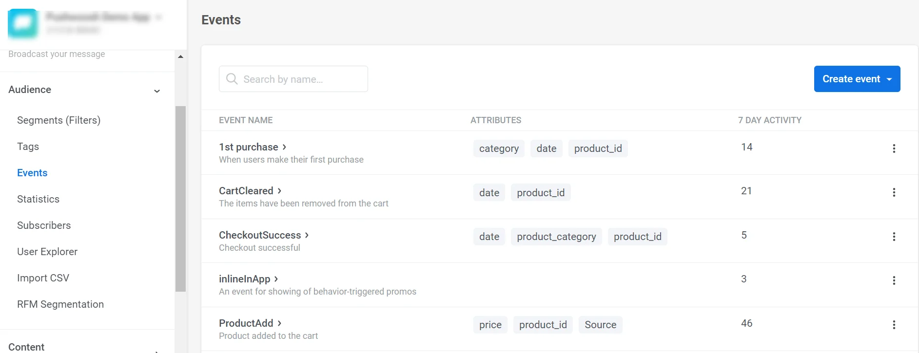 Anchor link toAdicionamos um novo Evento Padrão: PW_NotificationSend. Ele permite que você rastreie se uma mensagem foi enviada, independentemente do canal usado. Você pode usá-lo para criar segmentos com base no número de mensagens enviadas e analisar o comportamento do usuário após o envio de uma mensagem para eles.