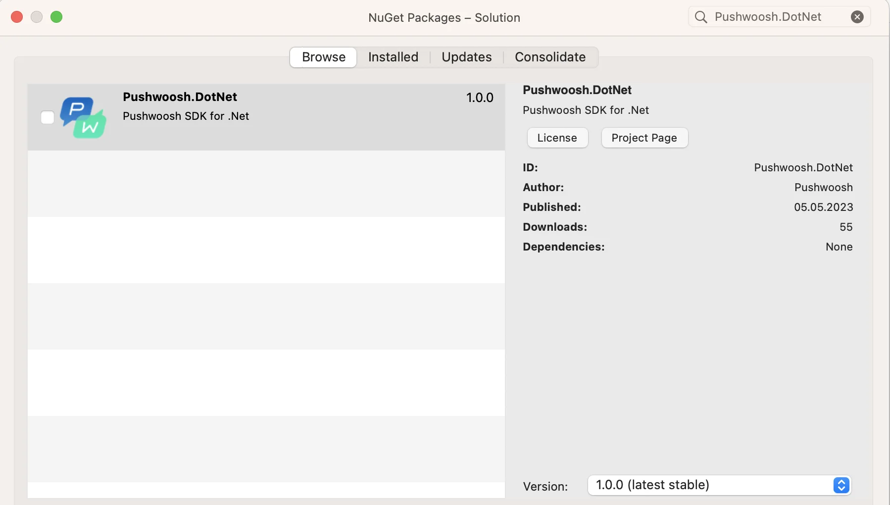 Anchor link to1. 将 Pushwoosh.DotNet Nuget 包添加到 Android 和 iOS 项目中: