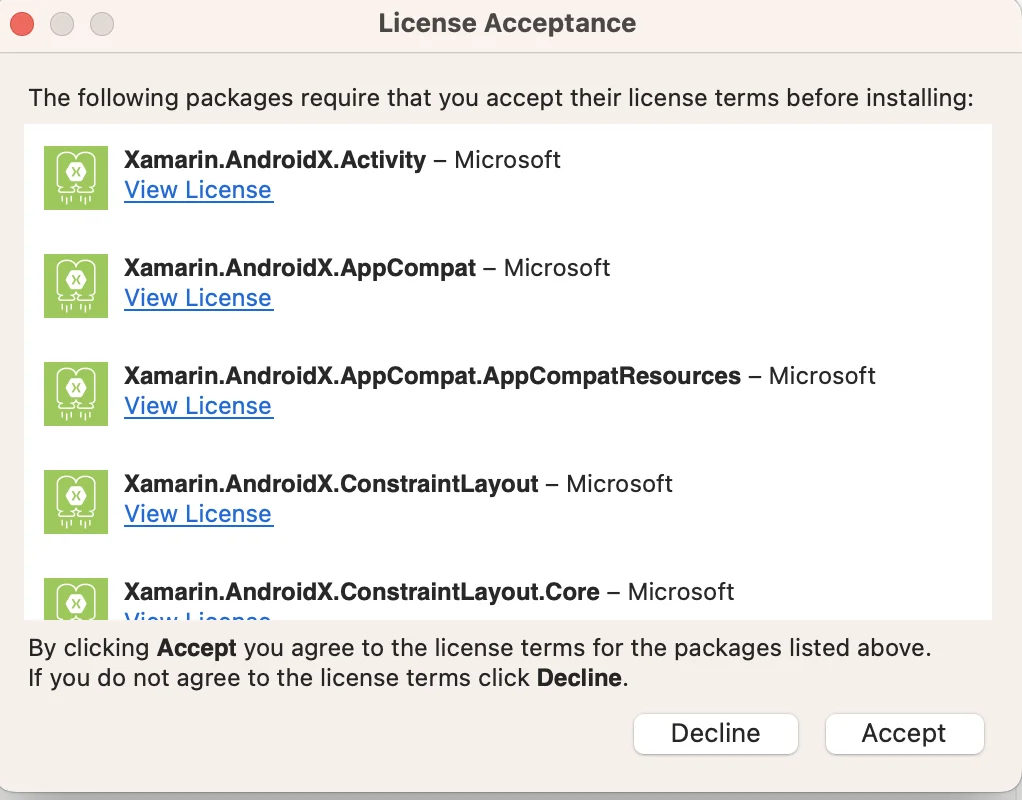 2. 如果需要,请接受传递性 Android 依赖项的许可证: