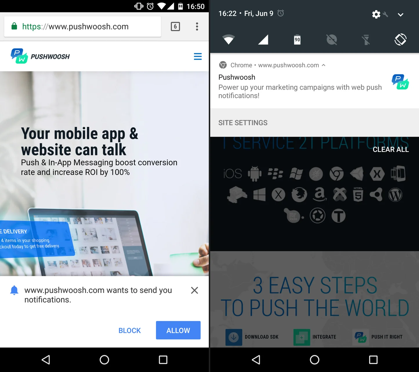 Chrome 网页推送通知是触达桌面和 Android 设备上网站受众的理想方式。Chrome 在桌面和移动网络浏览器中拥有超过 50% 的市场份额,是吸引用户和开展高效品牌活动的无与伦比的平台。