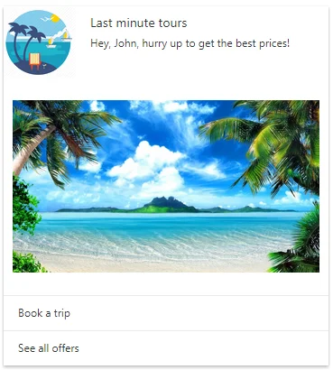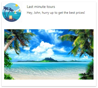 Anchor link to在文本之外增加一个视觉传达渠道,可以让您获得用户的更多关注,从而提升营销活动的效果。视觉传达易于理解且易于使用。只需简单一步——在创建营销活动时添加图片 URL,即可获得显著的点击率 (CTR) 增长。